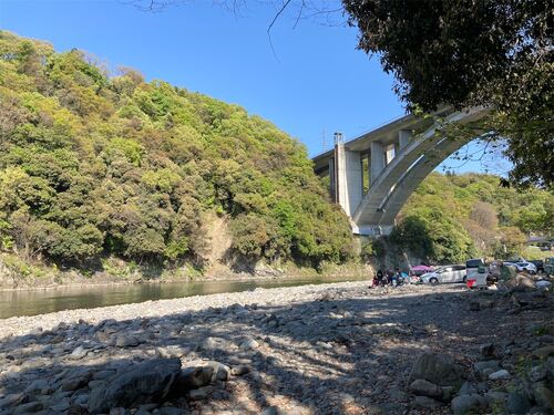 田代運動公園河川敷と同じく、中津川沿いの河川敷です。キャンプ場では有りませんのでお間違えなく。 田代運動公園とは違い、木陰があるので良い場所を確保出来ればタープなしでも大丈夫かと思います。 入り口は結構狭いので注意が必要です。 地面は結構ゴロ…